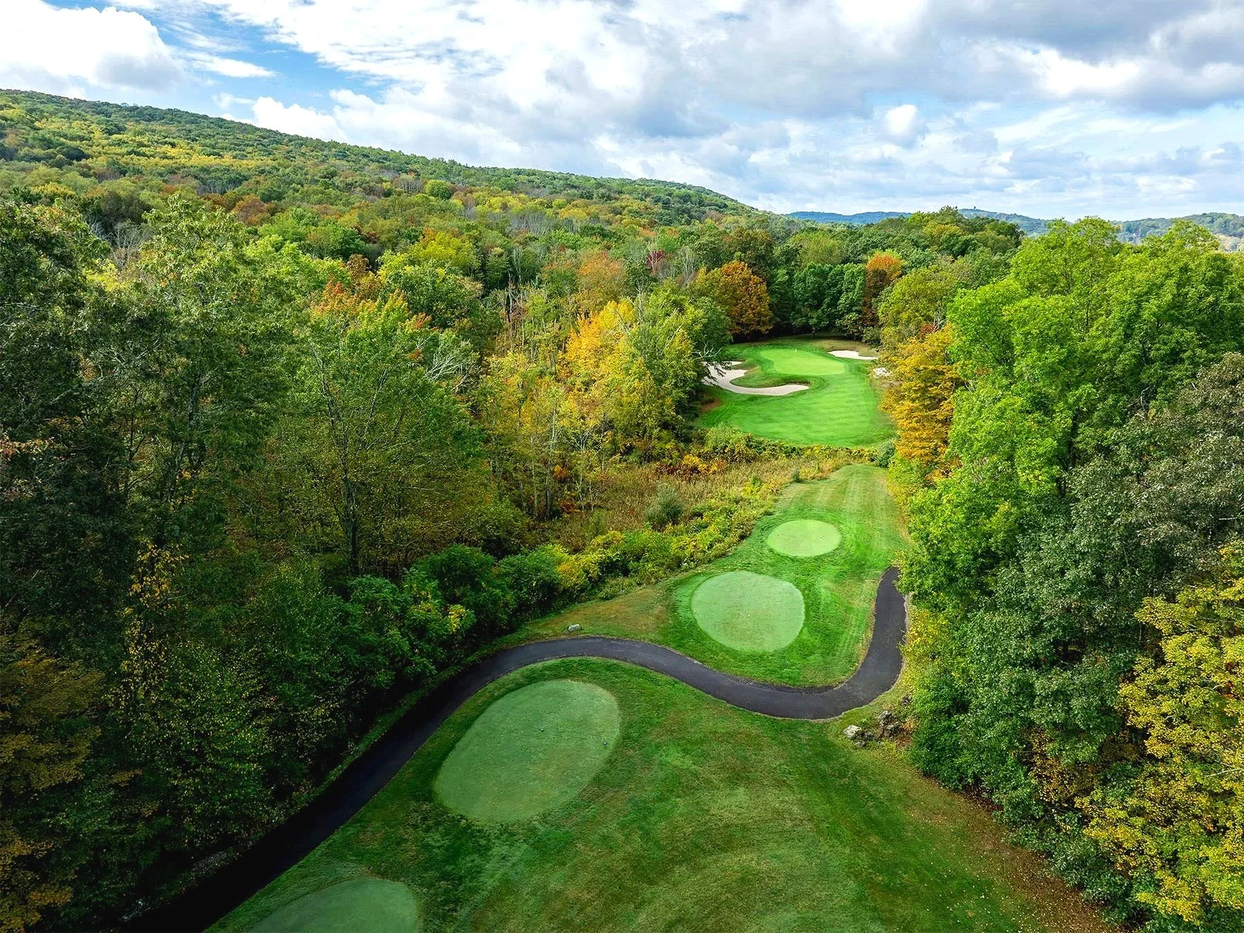 Skytop Lodge offers two distinct landscapes: the valley floor, where fairways trace Bald Eagle Creek, and the hillside Back Nine, which delivers broad views of the surrounding ridges. The course blends tranquility with grandeur, pairing intimate creekside holes with elevated vistas that celebrate the region’s natural drama.